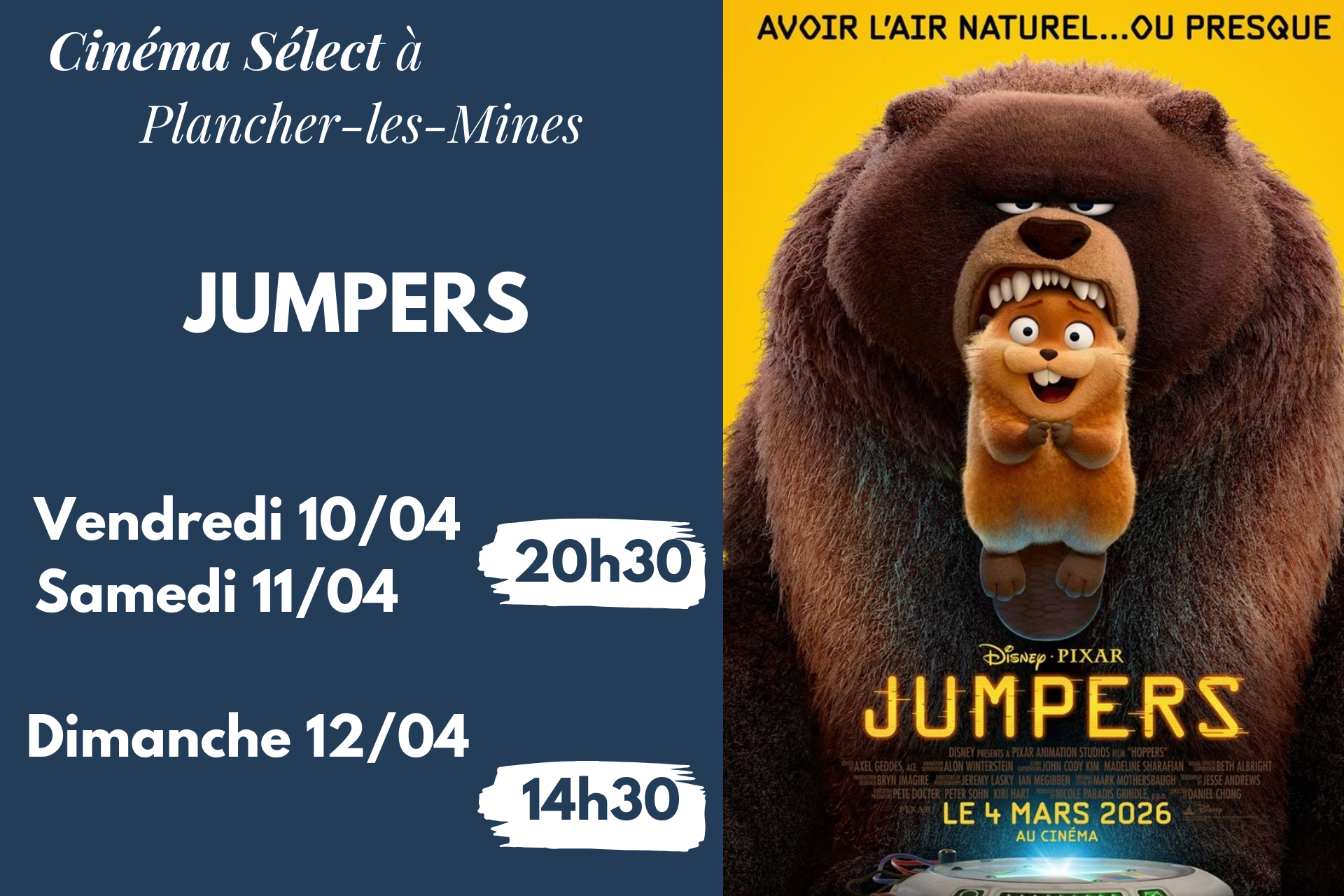 Film "JUMPERS" au CINEMA SELECT à PLANCHER-les-MINES