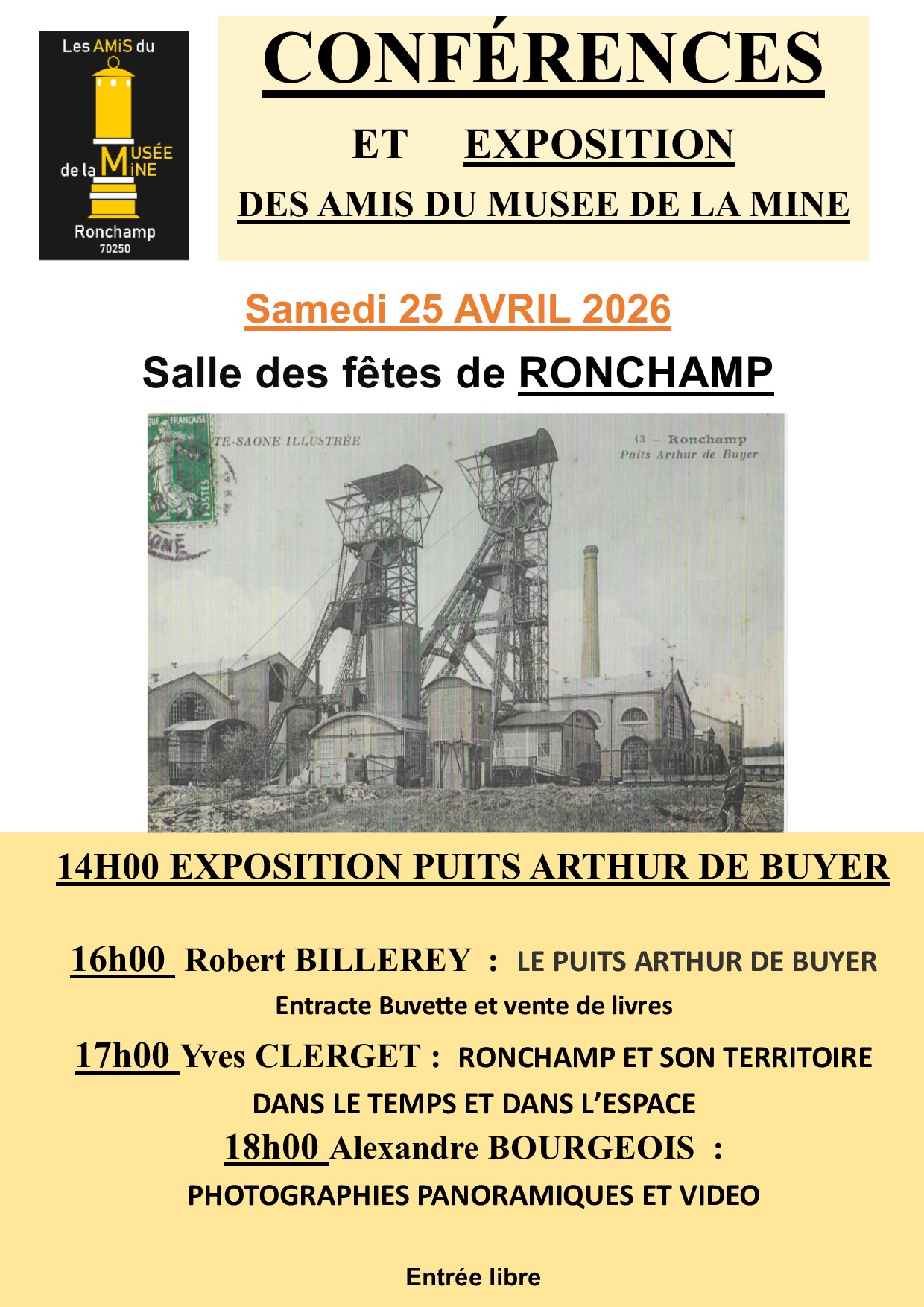 Comme chaque année, venez assister aux conférences des Amis du Musée de la Mine, à la salle des fêtes Georges Taiclet de Ronchamp.