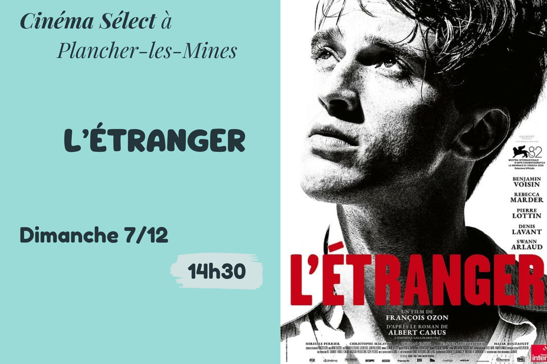 Film "L'ÉTRANGER" au Cinéma SELECT à PLANCHER-les-MINES