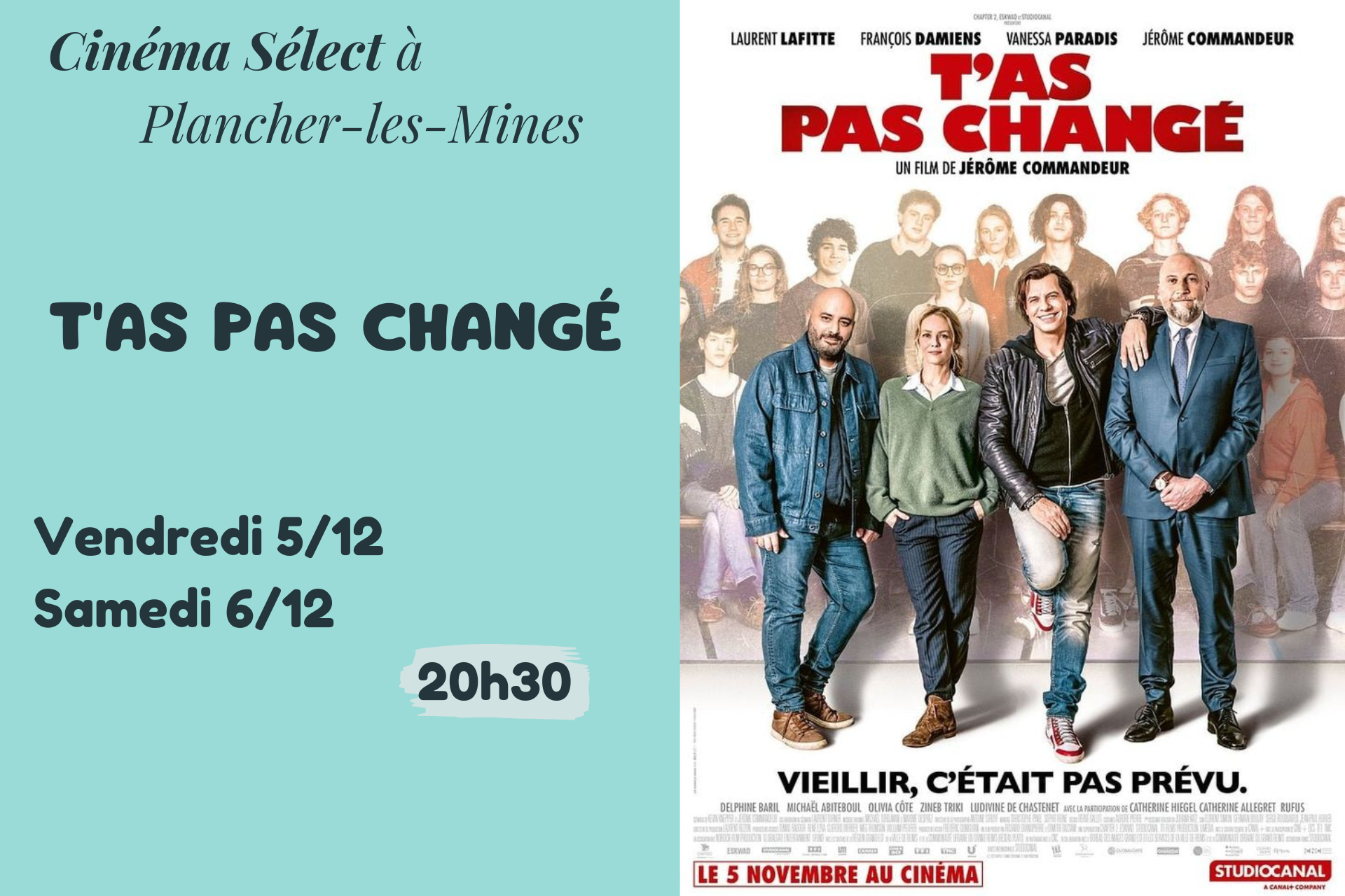 Film "T'AS PAS CHANGÉ" au CINEMA SELECT à PLANCHER-les-MINES