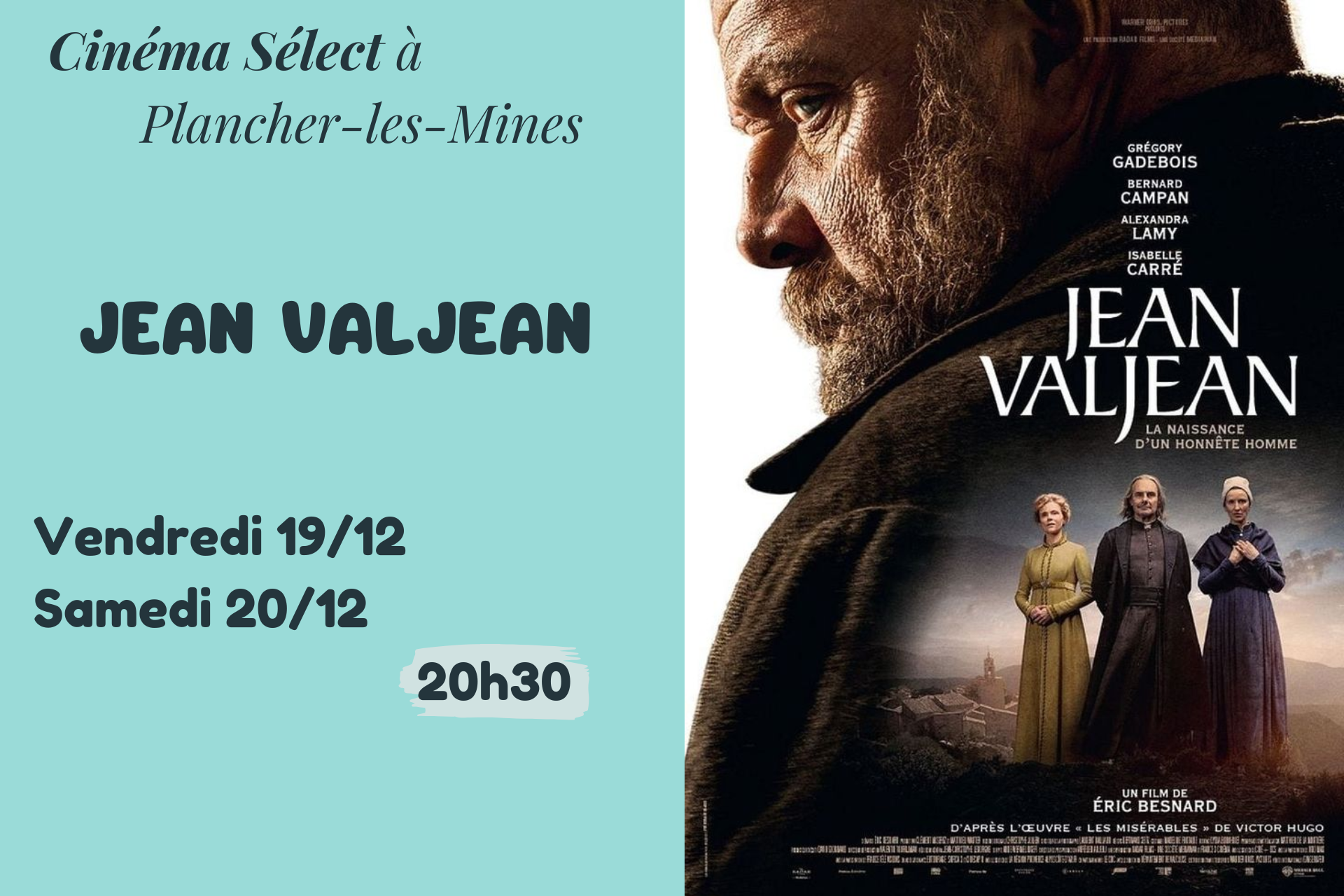 Film "JEAN VALJEAN" au Cinéma SELECT à PLANCHER-les-MINES
