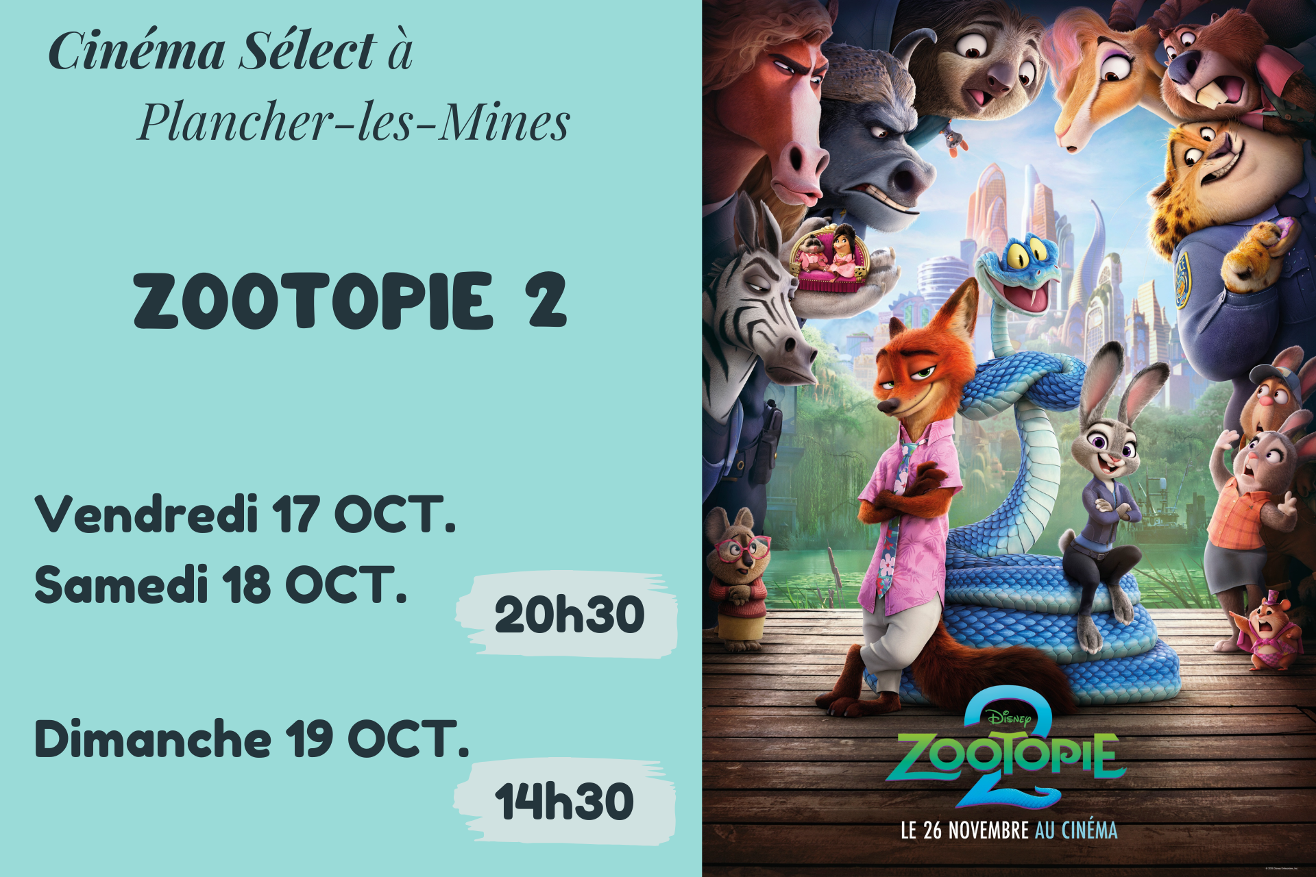 Film "ZOOTOPIE 2" au CINEMA SELECT à PLANCHER-les-MINES